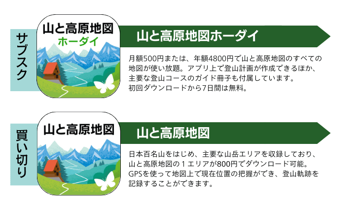 山と高原地図アプリ(ホーダイ版/買い切り版)