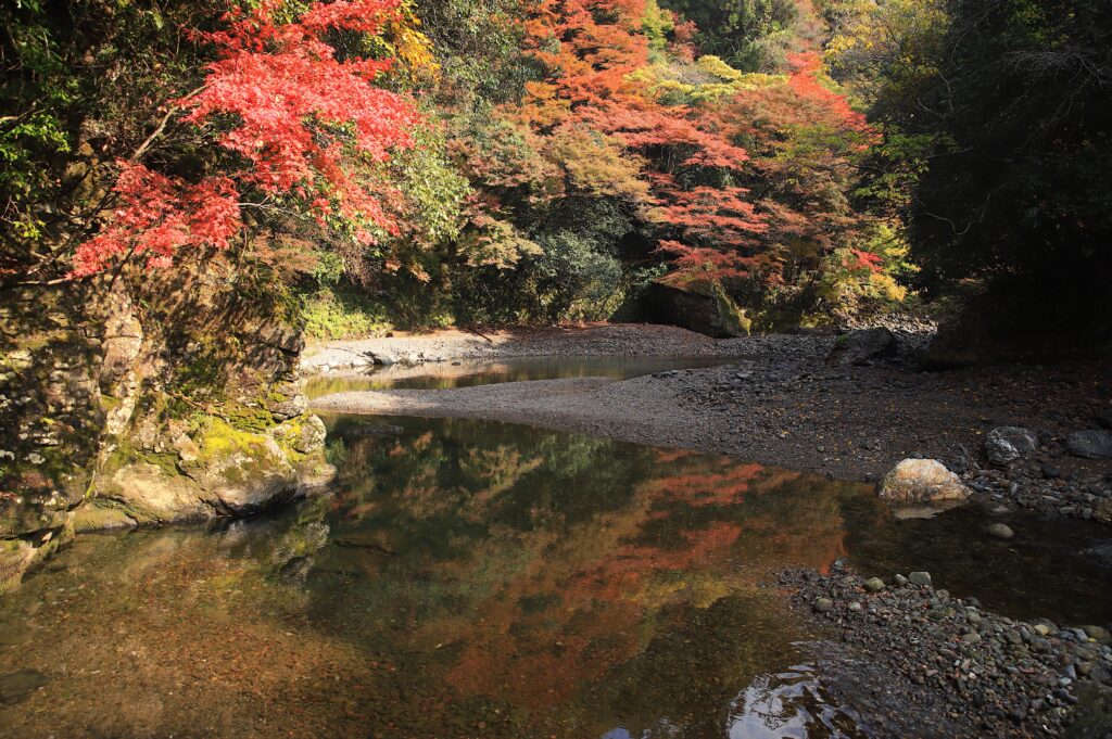 水面に映る紅葉が美しい、静寂の渓谷「錦雲渓」