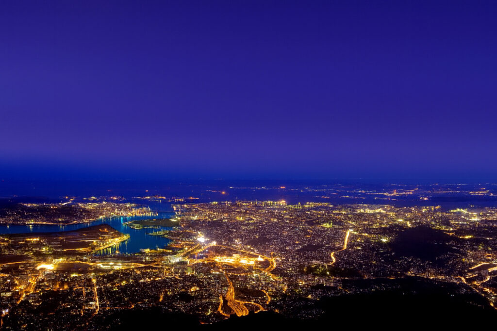山頂からは「新日本三大夜景」に選ばれた夜景が広がり、昼間は響灘や関門海峡を望む大パノラマ。標準コースタイムはふもとから山頂までおよそ1時間半〜2時間で、複数の登山道が整備されているため初心者から健脚者まで体力に合わせて選べます。市民の憩いの場であり、観光とセットでファミリーにも人気のスポットです。