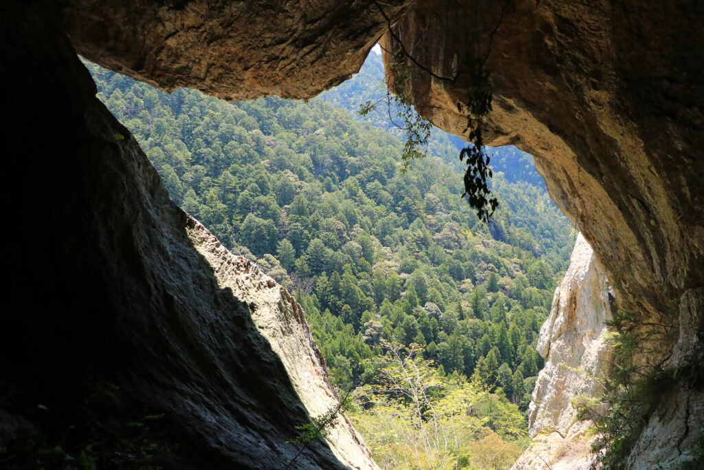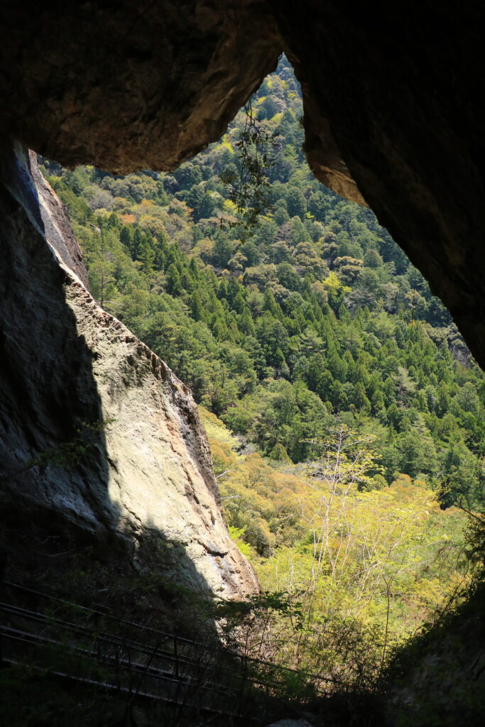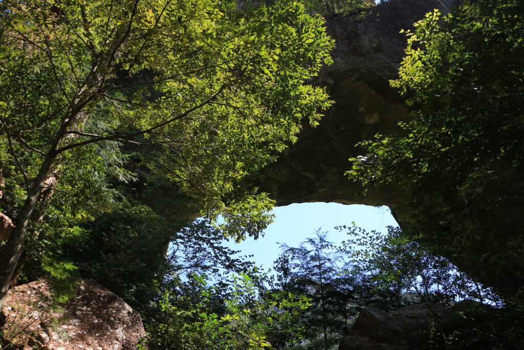 景勝地「乳岩」へ行くには、登山道から少し外れる必要がありますが、ぜひ立ち寄りたいスポット。内部に入ると岩窟の奥に自然の窓が開き、振り返った際に猫のシルエットのように見える光景が人気です。