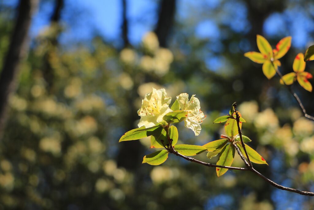 鬼岩乗越(おにいわのっこし)を通過すると尾根道に出ます。道幅はやや狭く、軽い岩場も点在するため注意が必要ですが、冒険心をくすぐる区間です。春から初夏にはツツジやシャクナゲが咲き誇り、花を楽しみながら歩けます。