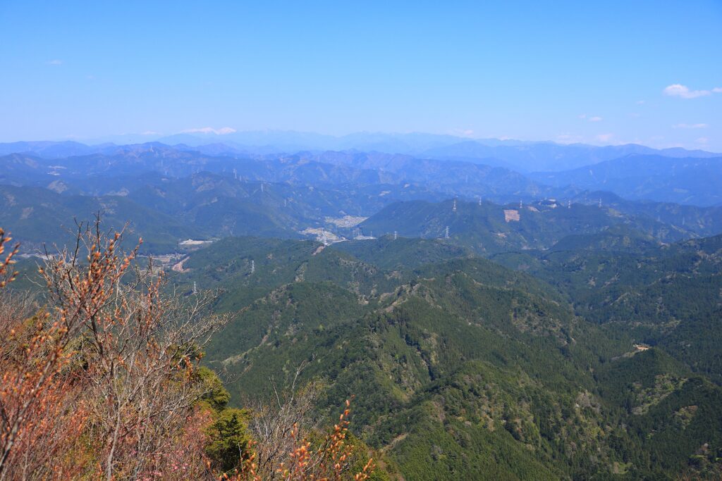 標高は1,016mと高くはありませんが、周囲に同等の高さの山が少ないため眺望は格別。条件が良ければ南アルプスや富士山(標高3,776m)まで見渡せます。片道約4時間の行程を歩き切った達成感とともに、雄大な絶景が待っています。