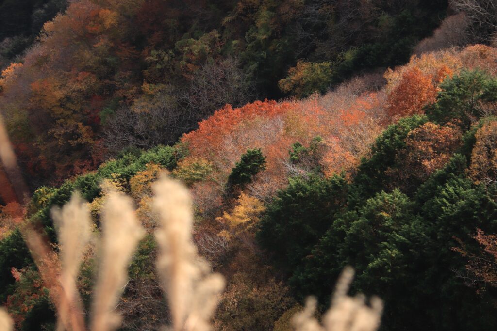 春は桜、夏は新緑、秋は紅葉と、四季折々の彩りも魅力です。岩尾根を過ぎれば最後の急斜面。足元に注意しながら登り切ると、山頂に設けられた展望台が姿を現します。