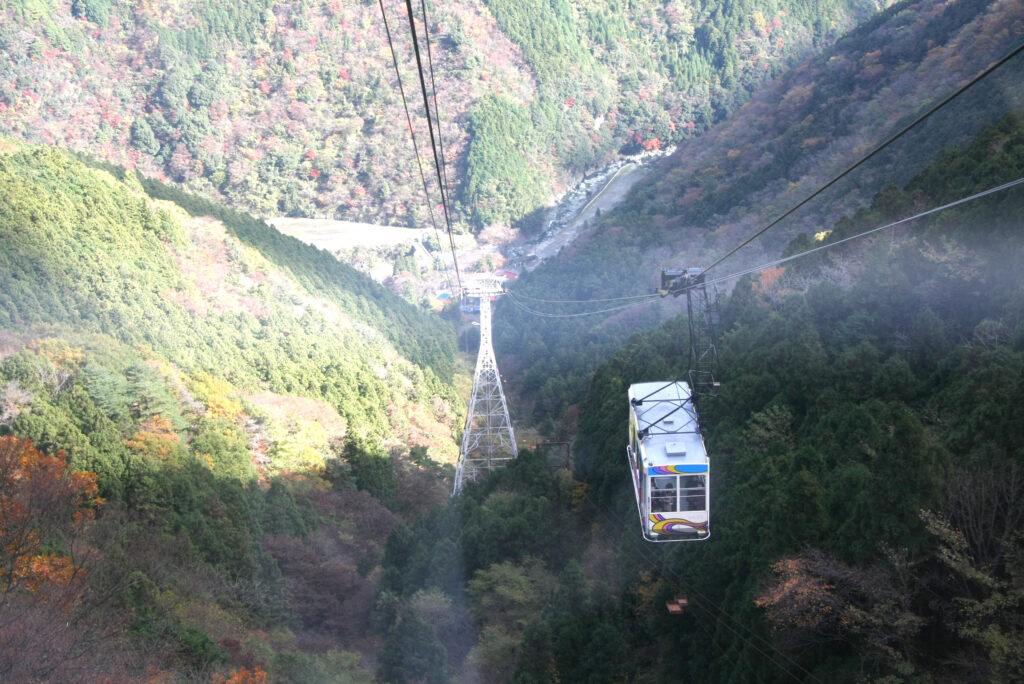 谷から一気に上昇する石鎚登山ロープウェイ