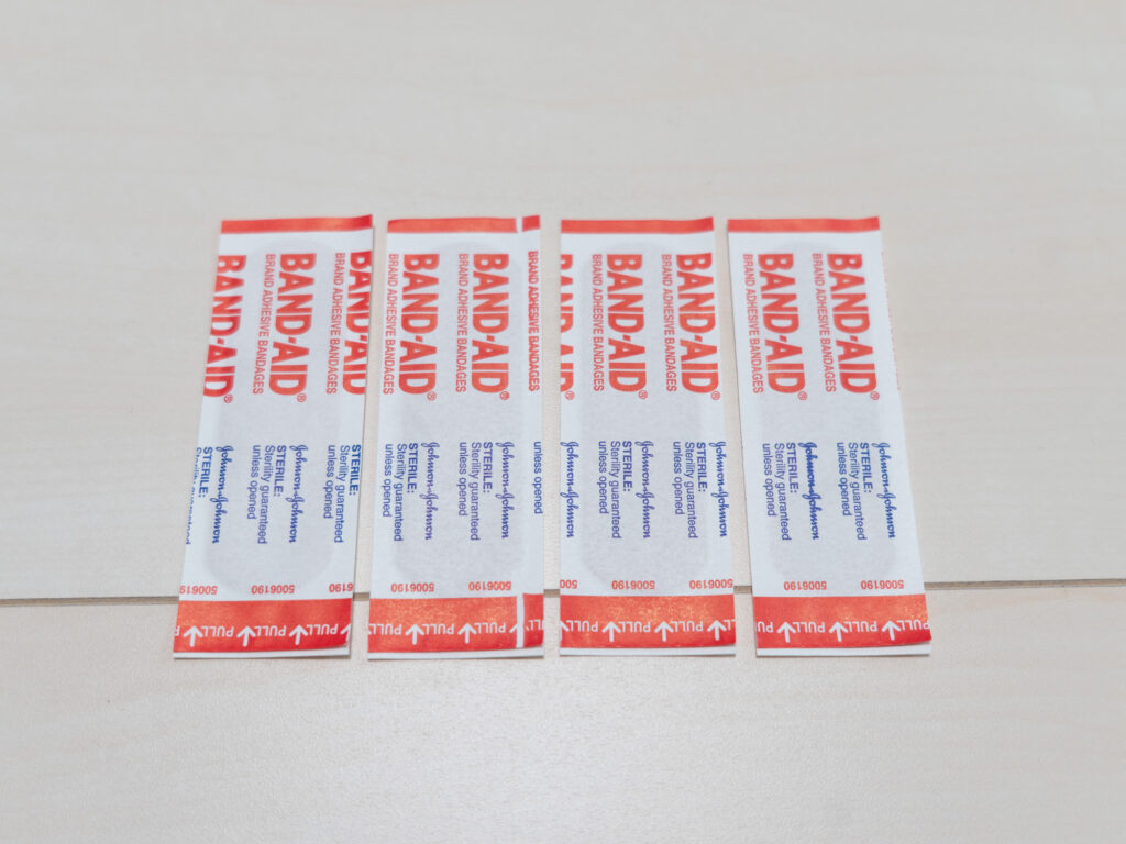 止血や靴擦れ、マメの保護に欠かせないアイテムです。傷の場所や大きさに合わせて、さまざまなサイズやタイプを用意しておきましょう。防水タイプや傷の治りを促すハイドロコロイドタイプが便利です。ただし、感染兆候(発赤・腫脹・熱感・疼痛増悪・膿)があれば使用を中止し受診を。噛み傷・汚染創・深い創・大量滲出には不適です。