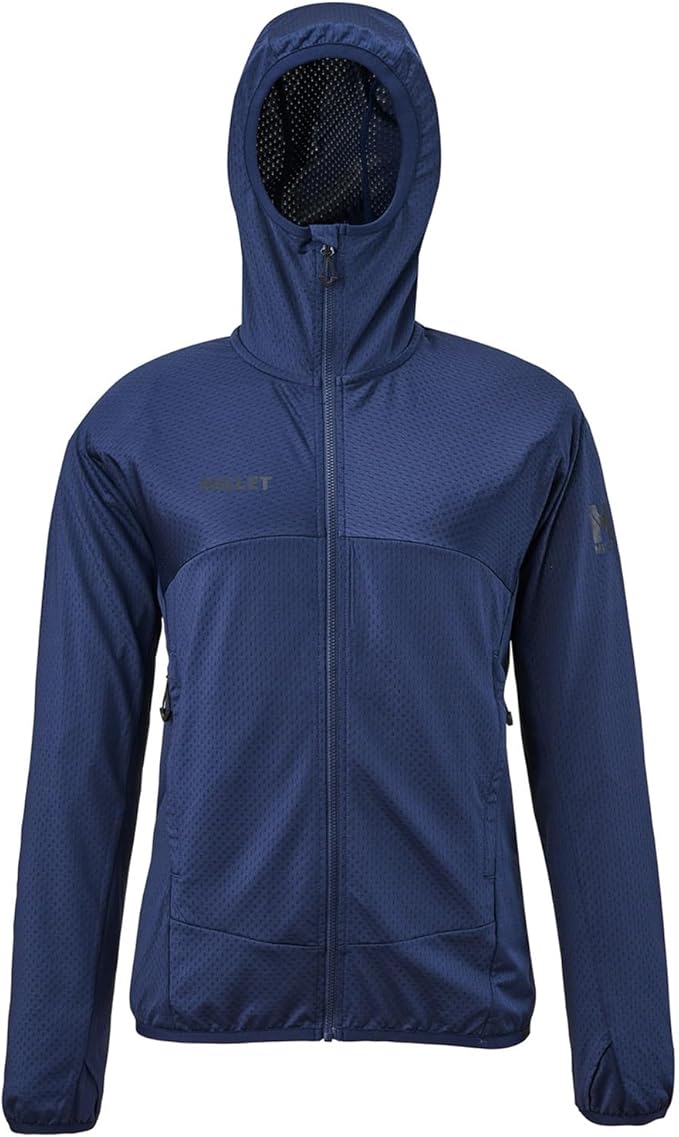 ミレーは、フランス・アルプス発の老舗アウトドアブランド。「ミドラーメッシュフーディ」は、メッシュ構造+微細な凹凸模様の薄手フリース生地で、通気性と保温性のバランスに優れているのが特徴です。UVカット機能も備え、汗をかいてもムレにくく快適。身体のラインに沿ったフィット感による抜群の動きやすさで、登山初心者から中級者まで幅広く支持されています。