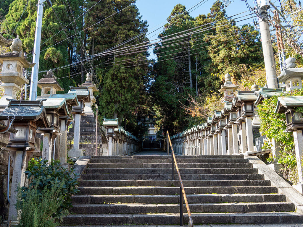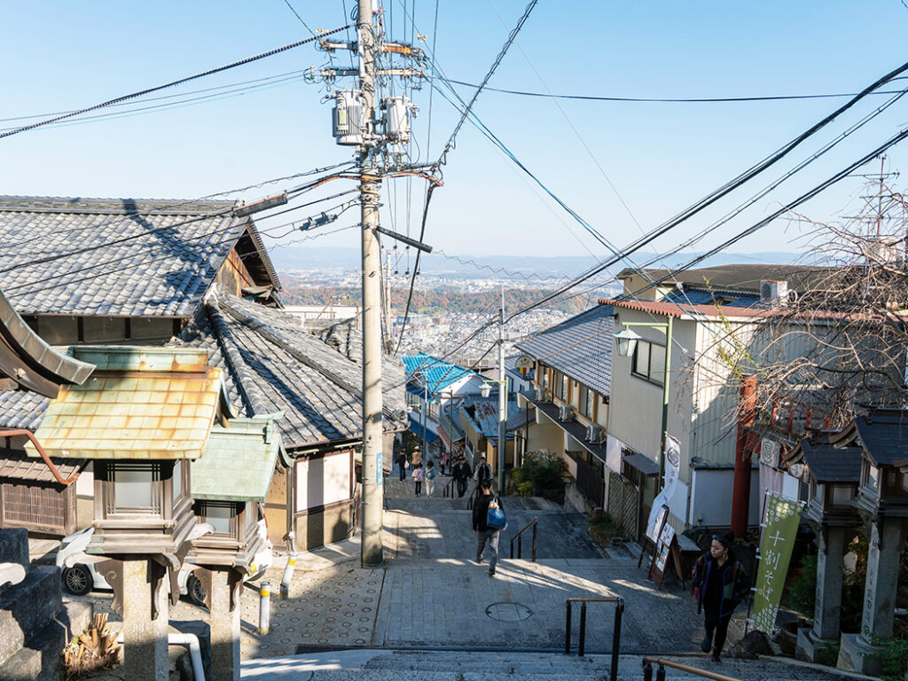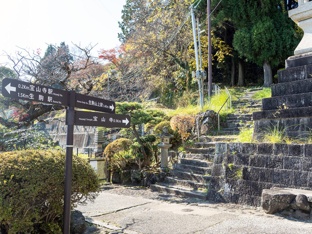 宝山寺を出発し、どこかレトロな雰囲気が漂う石段の道を歩いて生駒駅へと戻ります。