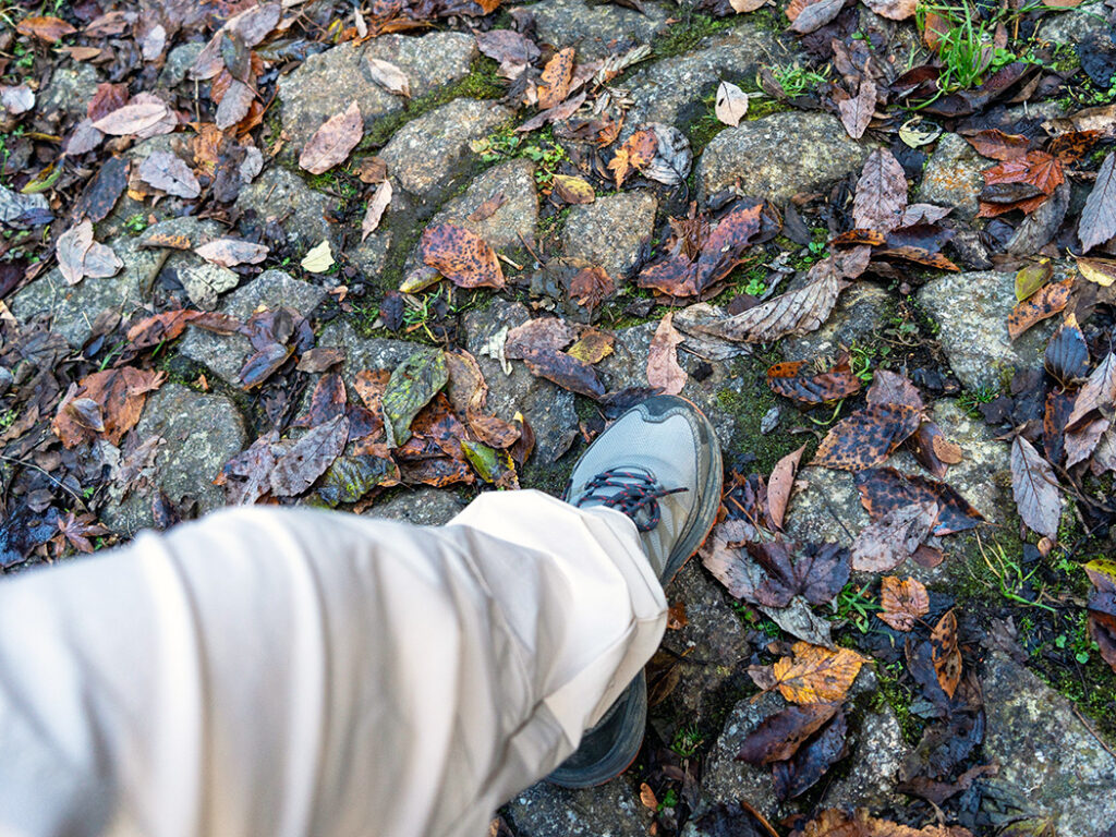 下山は登りに比べて歩きやすいのですが、階段を下ることで足への負担は大きくなります。疲れが溜まっていると滑りやすくなるので、一歩ずつ油断せず足を下ろし、集中力を保つことが大切です。