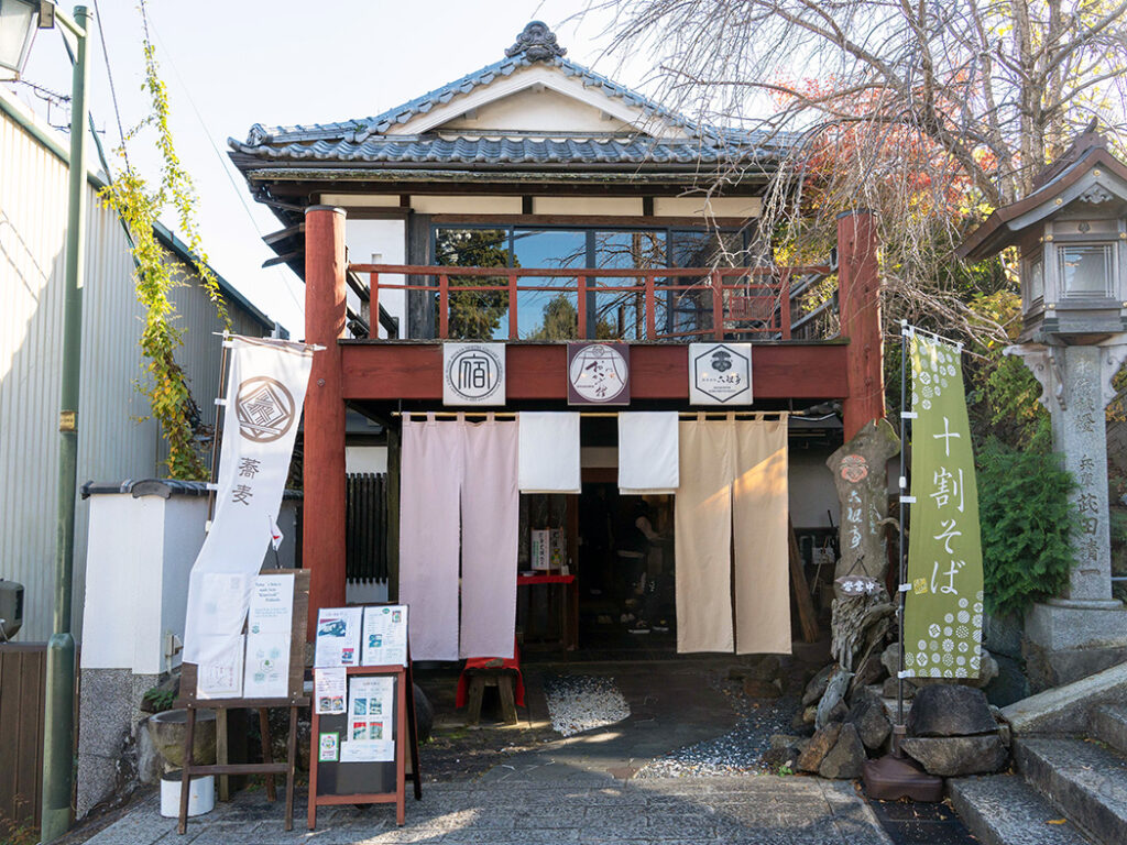 宝山寺参道沿いにある複合施設「門前おかげ楼」のダイニングである「六根停」では、山麓からの絶景を望みながら、石臼挽の挽きたて自家製粉で打った十割蕎麦が楽しめます。口の中にふわっと広がる蕎麦の味とこだわりの出汁は心から染みわたるおいしさ。日本家屋の落ち着いた店内で、贅沢なひと時を過ごせます。