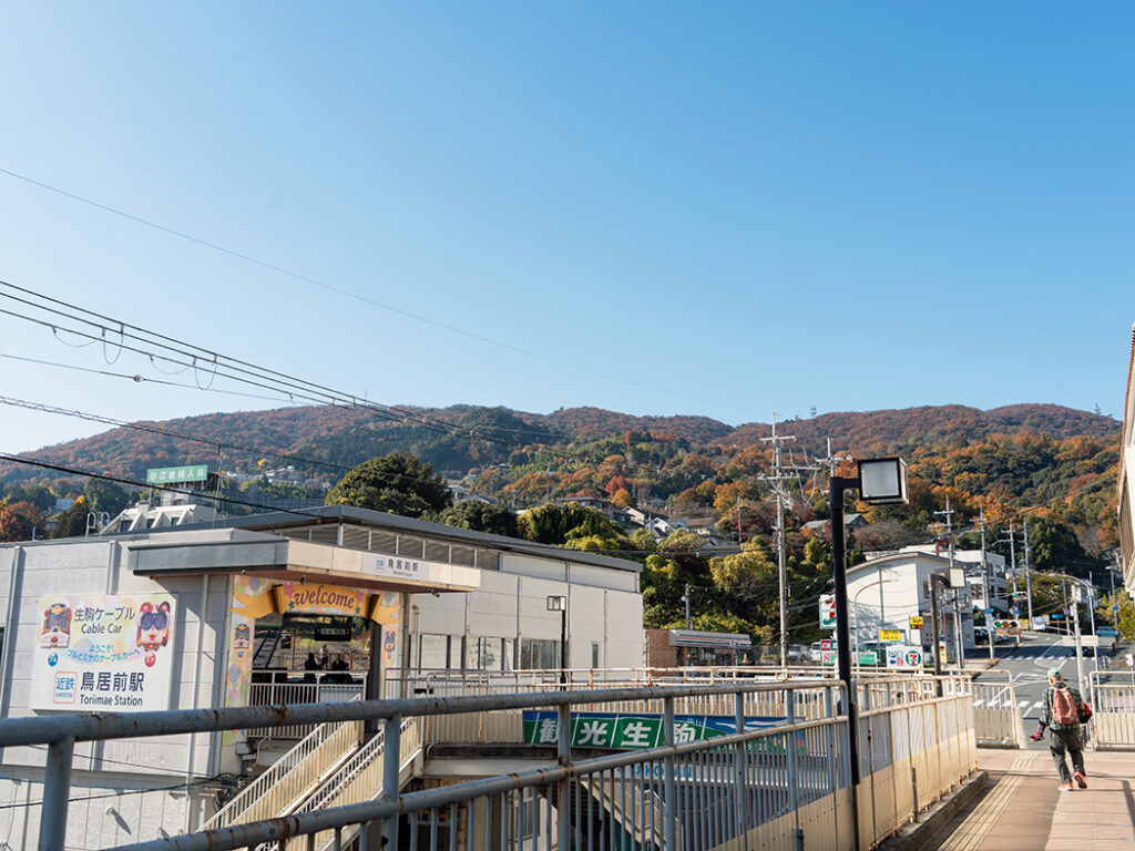 今回の登山コースの起点は、近鉄奈良線・けいはんな線の生駒駅です。駅から登山口までは約20分。商店街や住宅街を通り、生駒山の穏やかな山容を眺めながら登山口へアクセスします。