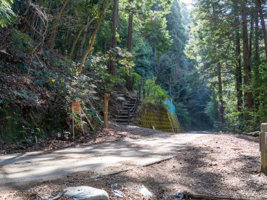 途中で舗装路に合流します。右側は、先ほどと同じく南葛城山方面へ続く道です。