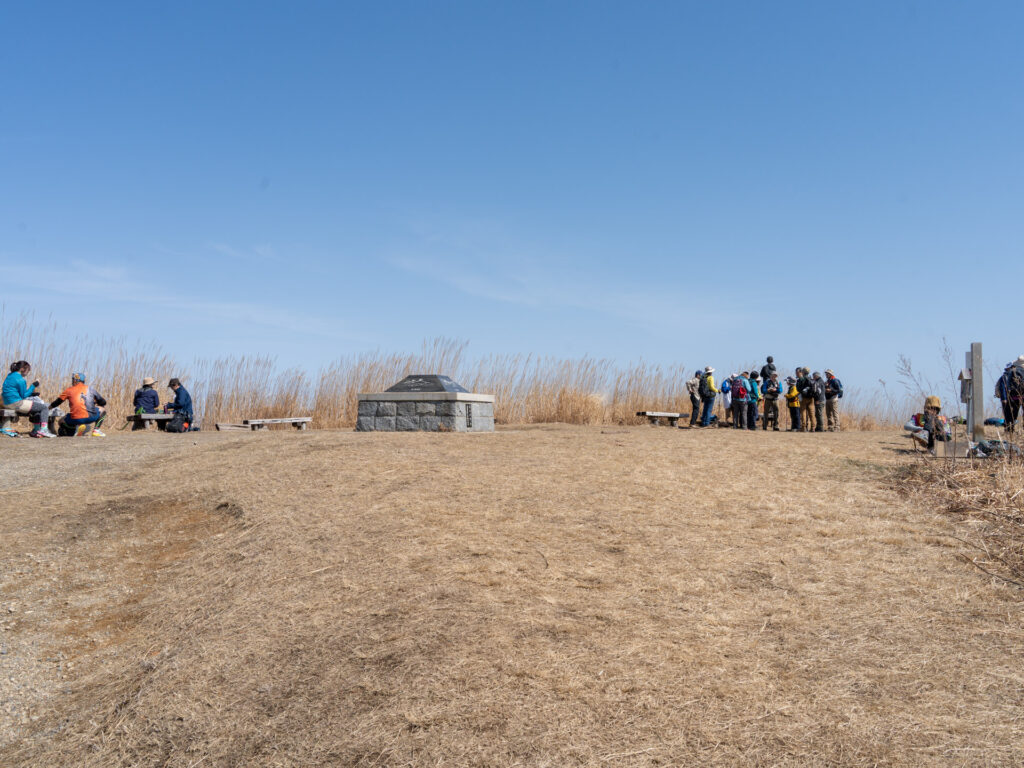 山頂標識のある場所から少し手前に戻った山頂広場には、いくつもベンチが置かれ、景色を楽しむ登山客の姿が見えました。