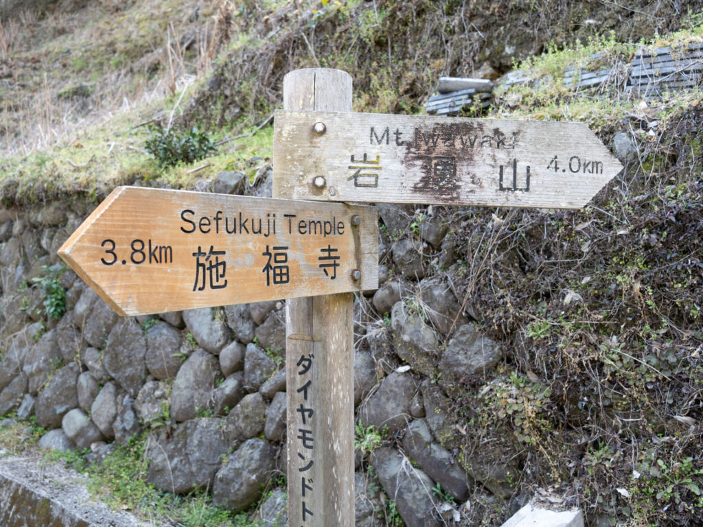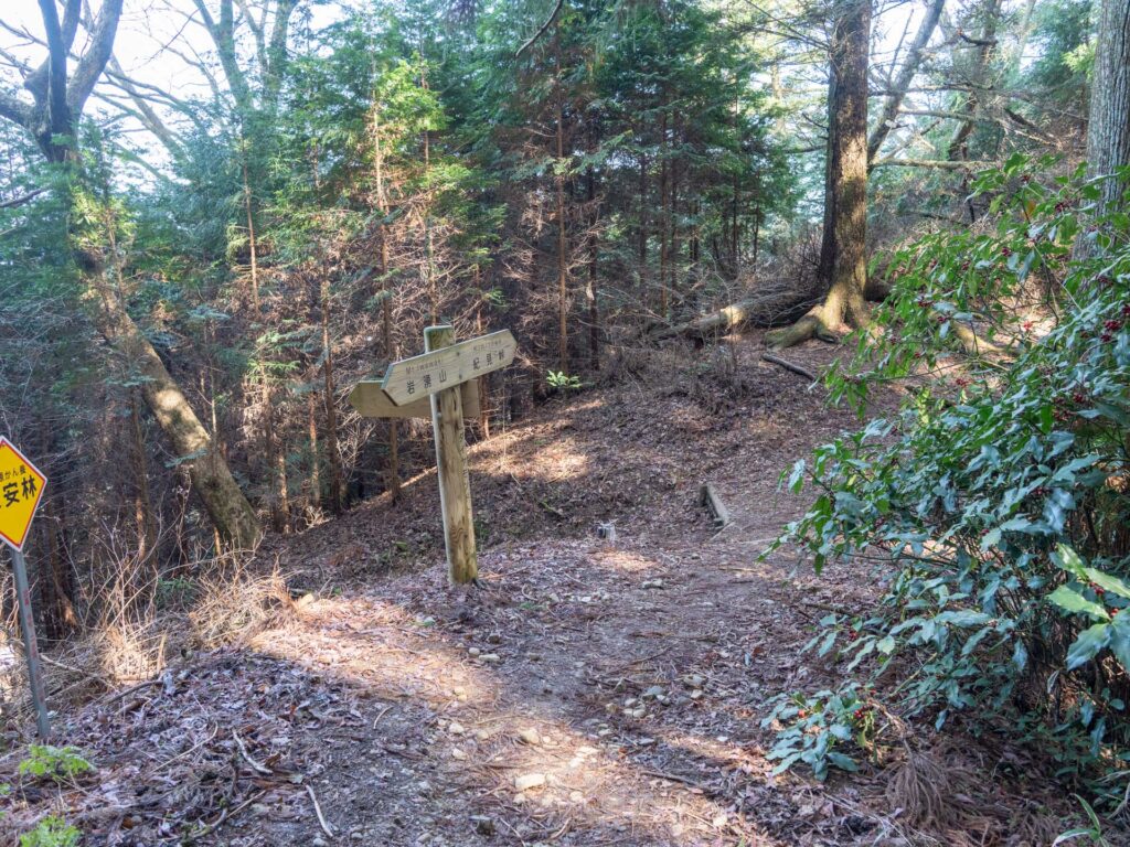 左は「いわわきの道」と呼ばれるコースで、東峰の分岐と同じく河内長野市方面に下りることができます。