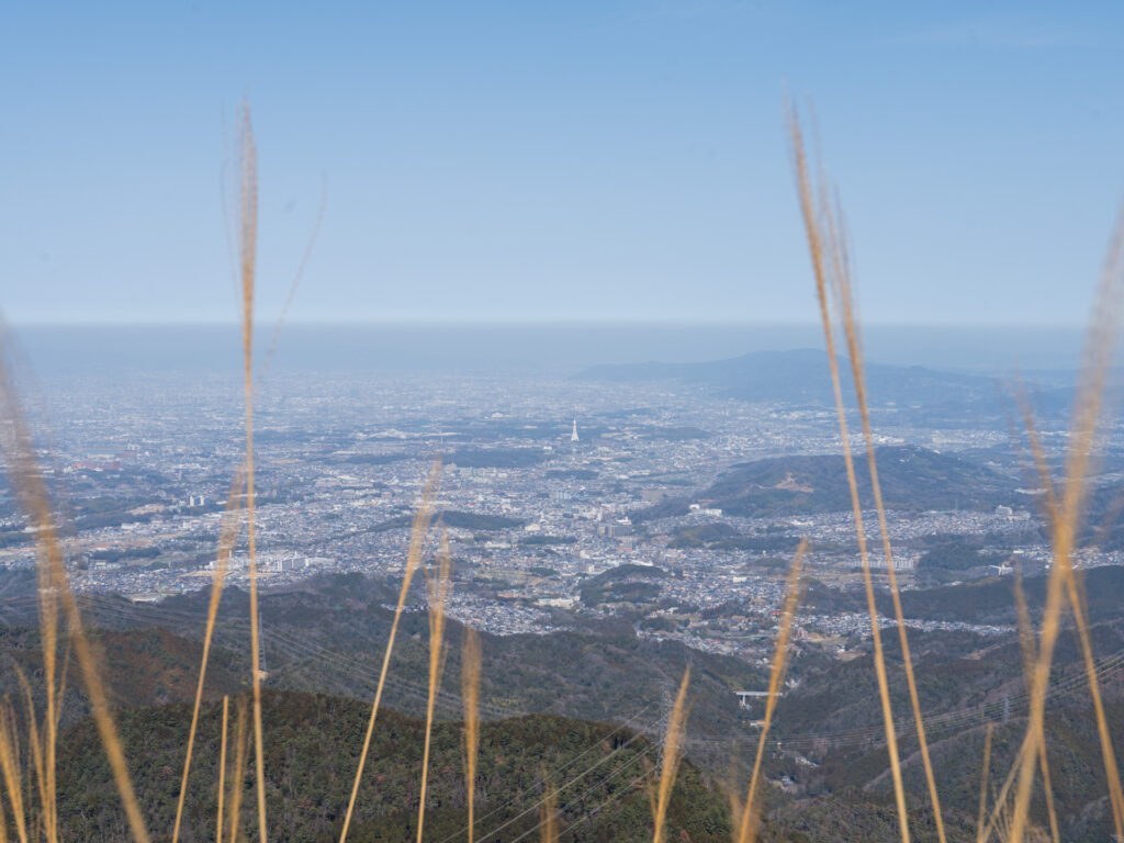 山頂には大阪平野、大阪湾、六甲山、淡路島、さらに金剛山や葛城山系を一望できる大パノラマがあり、風に揺れるススキとともに見渡す景色はまさに圧巻。人気シーズンはススキが見頃となる秋ですが、四季を通じて美しい景観が楽しめます。