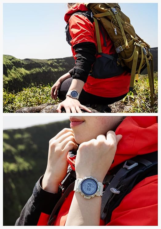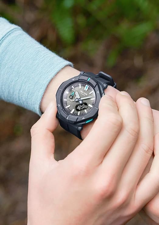 プロトレックは、カシオが展開するアウトドア向け時計ブランド。高度・気圧・方位を計測できるトリプルセンサーを搭載しながら、比較的シンプルな操作性で扱いやすいのが特長です。ソーラー充電にも対応しており、電池切れの心配が少ない点も安心材料になります。