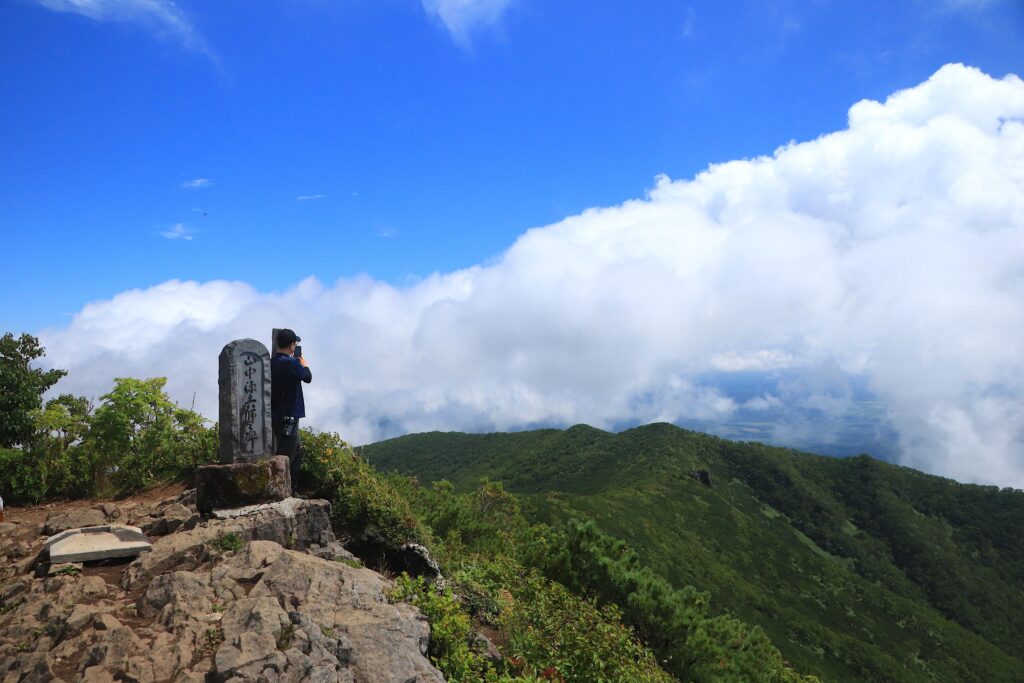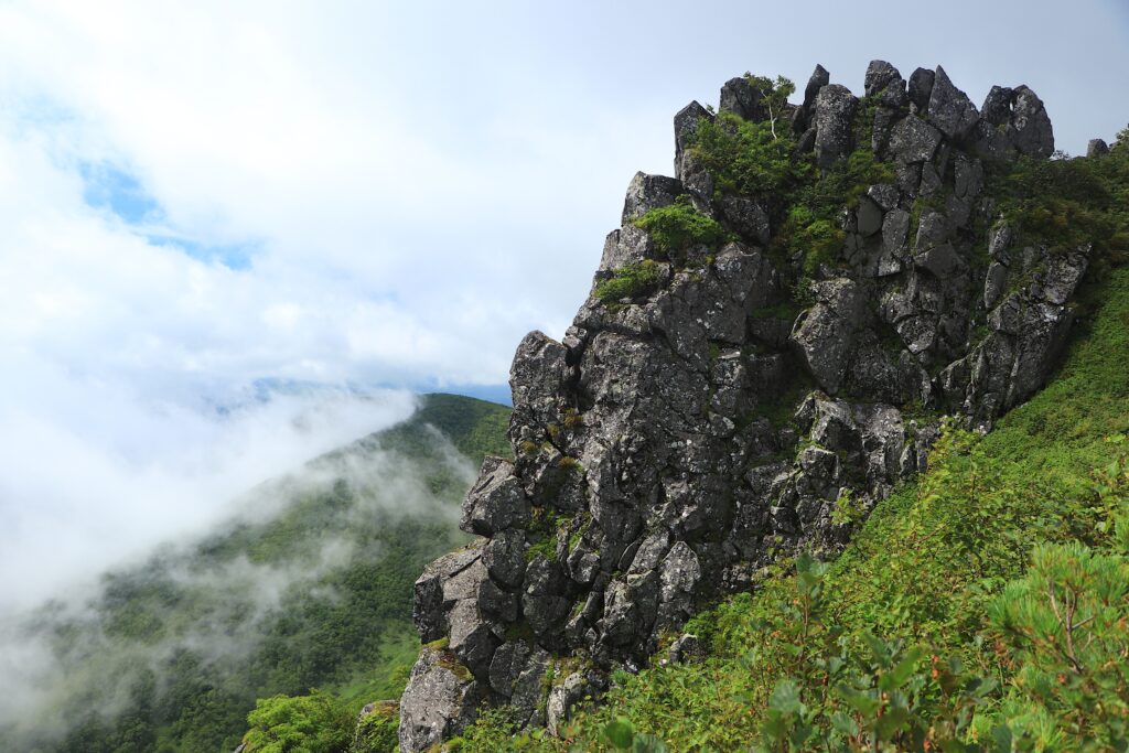さらに進むと現れるのが「屏風岩」です。突如として現れる荒々しい岩峰は、それまでのなだらかな風景とは対照的で、このコースの印象的な目印になっています。天候によってはガスが流れ込み、雰囲気ががらりと変わるのも魅力です。