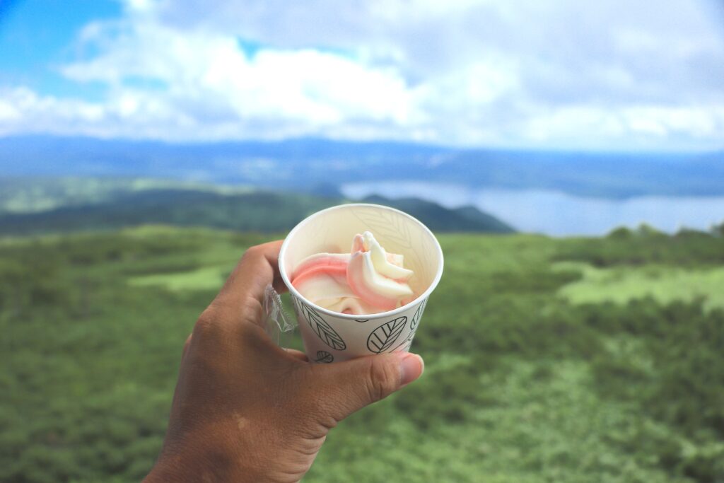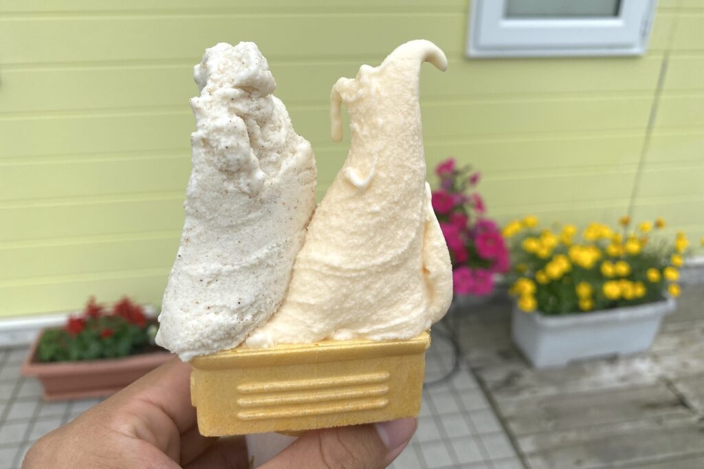 観光の合間には、弟子屈町中心部にある「摩周湖のあいす」にもぜひ立ち寄りたいところ。摩周産の野菜や果物、牛乳を100%使用したジェラートは、「摩周メロン」や「摩周そば&そばの実」など個性豊かなフレーバーが並び、ダブルで楽しむのもおすすめです。