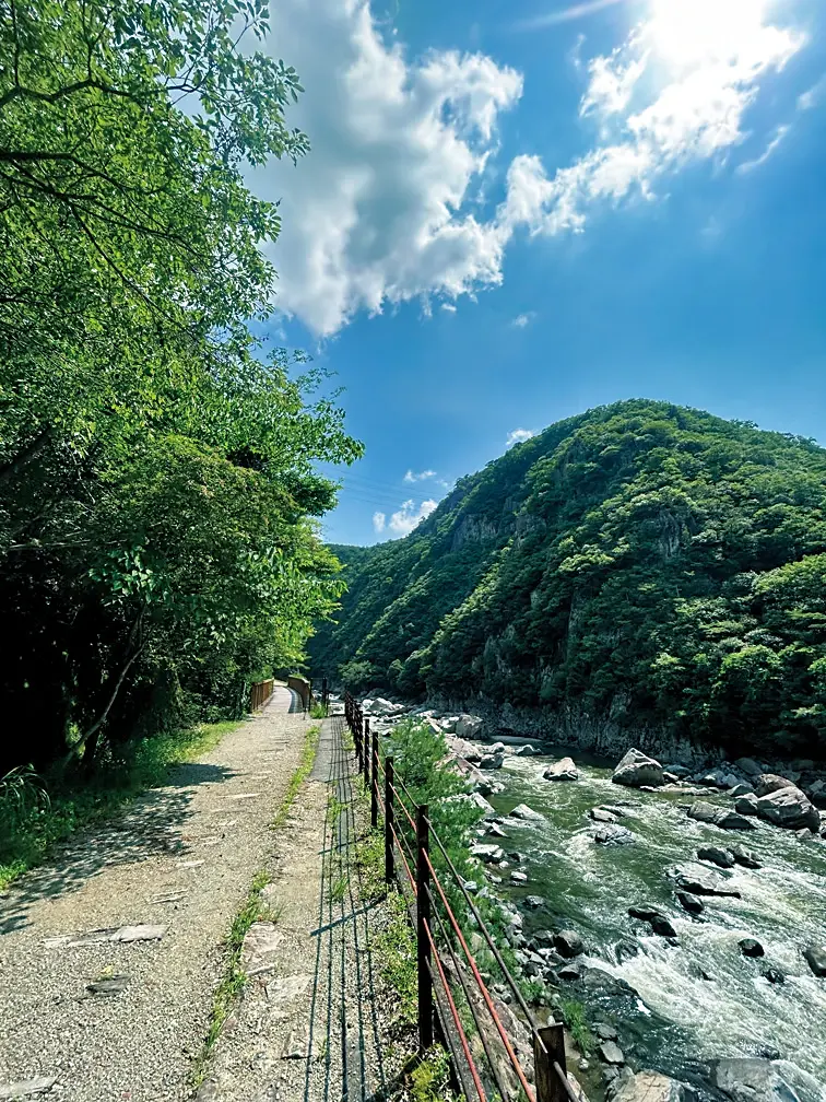 京阪私市駅最寄りの、私市水辺プラザから遊歩道を歩きます。星の里いわふねを川沿いに通過し、徐々に自然を感じながら歩みを進めると、府民の森ほしだの木道に入ります。ほどなくトイレや案内所のあるピトンの小屋と、右手には「なみはや国体」の公式競技場として使用された、高さ16.5mの大きなクライミングウォールが出現します。体験用ウォールもあるので、時間に余裕があれば試してみましょう。 道なりに坂道を登ると、前方に「星のブランコ」という吊橋が見えてきます。鳥のさえずりや立夏の風、鮮やかに山を彩る紅葉など、季節ごとに移りゆく風景に心を奪われることでしょう。 やまびこ広場に入り、管理道を南へ進むと、眼下にはまぶしく光る御影石が並ぶ飯盛霊園が広がります。墓地内の脇を通過して国道163号へ。下田原西交差点で信号を渡り、国道を離れ住宅地へ入り、進むこと約5分、戎公園バス停前の小さな橋を渡って川沿いを道なりに進み、ビオトープ原田の里山ゲートを潜ると、再び山道が始まります。堂尾池沿いにしばらく進むと自動車道に出ます。歩道を北西へ3分ほど進んだところにある信号のない横断歩道を渡ります。ここは見落としやすいうえ、比較的交通量が多いので、注意して横断してください。 ここから府民の森むろいけ園地に入ります。自然林に囲まれた遊歩道が張り巡らされ、目的に応じたルートが楽しめます。この園地を西に抜ければ飯盛山経由でJR四条畷駅へ、野崎観音経由でJR野崎駅へ行くことも可能です。どちらも園地から約1時間です。 むろいけ園地を後にして、細い山道を抜けると阪奈道路に出ます。歩道橋を渡り、田園を眺めながら道路を進むと再び山道へ入ります。ゴルフ場の脇を通りすぎて、燈籠ゲート(石の灯籠)から府民の森くさか園地に入ります。歩きやすい管理道を登るとくさかコース合流点で南側からくさかハイキングコースと合流します。ここから近鉄石切駅まで約50分で下山可能です。このコースは、春先になると白くて愛らしいこぶしの花がハイカーを出迎えてくれます。 管理道をさらに進むと、府民の森ぬかた園地に入ります。興法寺との分岐が辻子谷コースとの出合です。この園には関西屈指のあじさい園があり、6月中頃から幻の紫陽花や七段花などが見頃を迎えます。ぜひカメラを持って訪れてください。あじさいプロムナード最上位の通路から生駒縦走歩道を外れ、あじさい新道経由で山頂へ向かいます。摂河泉コースと合流後、信貴生駒スカイラインのトンネルを潜り急登を上り詰めれば、電波塔とその向こうに生駒山頂遊園地が現れます。生駒山山頂の三角点はミニSLの敷地内にあります。京阪私市駅最寄りの、私市水辺プラザから遊歩道を歩きます。星の里いわふねを川沿いに通過し、徐々に自然を感じながら歩みを進めると、府民の森ほしだの木道に入ります。ほどなくトイレや案内所のあるピトンの小屋と、右手には「なみはや国体」の公式競技場として使用された、高さ16.5mの大きなクライミングウォールが出現します。体験用ウォールもあるので、時間に余裕があれば試してみましょう。 道なりに坂道を登ると、前方に「星のブランコ」という吊橋が見えてきます。鳥のさえずりや立夏の風、鮮やかに山を彩る紅葉など、季節ごとに移りゆく風景に心を奪われることでしょう。 やまびこ広場に入り、管理道を南へ進むと、眼下にはまぶしく光る御影石が並ぶ飯盛霊園が広がります。墓地内の脇を通過して国道163号へ。下田原西交差点で信号を渡り、国道を離れ住宅地へ入り、進むこと約5分、戎公園バス停前の小さな橋を渡って川沿いを道なりに進み、ビオトープ原田の里山ゲートを潜ると、再び山道が始まります。堂尾池沿いにしばらく進むと自動車道に出ます。歩道を北西へ3分ほど進んだところにある信号のない横断歩道を渡ります。ここは見落としやすいうえ、比較的交通量が多いので、注意して横断してください。 ここから府民の森むろいけ園地に入ります。自然林に囲まれた遊歩道が張り巡らされ、目的に応じたルートが楽しめます。この園地を西に抜ければ飯盛山経由でJR四条畷駅へ、野崎観音経由でJR野崎駅へ行くことも可能です。どちらも園地から約1時間です。 むろいけ園地を後にして、細い山道を抜けると阪奈道路に出ます。歩道橋を渡り、田園を眺めながら道路を進むと再び山道へ入ります。ゴルフ場の脇を通りすぎて、燈籠ゲート(石の灯籠)から府民の森くさか園地に入ります。歩きやすい管理道を登るとくさかコース合流点で南側からくさかハイキングコースと合流します。ここから近鉄石切駅まで約50分で下山可能です。このコースは、春先になると白くて愛らしいこぶしの花がハイカーを出迎えてくれます。 管理道をさらに進むと、府民の森ぬかた園地に入ります。興法寺との分岐が辻子谷コースとの出合です。この園には関西屈指のあじさい園があり、6月中頃から幻の紫陽花や七段花などが見頃を